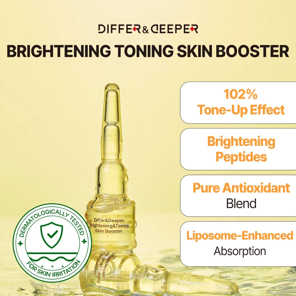 #DifferAndDeeper #BrighteningBooster #ToningEssence #SkinBooster #UnevenSkinTone #Idebenone #Bakuchiol #VitaminPeptide #GlowUp #KBeauty #StarterSkincare #TravelSkincare #BrighteningSkincare #SensitiveSkinSafe #WaterTypeToner #LiposomeTechnology #AntiPigmentation #KoreanSkincare